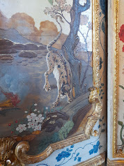 On trouve un cabinet de ce genre au Palais Royal de Turin, je vous l'ai montré, mais vous penserez peut-être également aux singeries de Champs-sur-Marne et de Chantilly. (est-il utile de rappeler que c'est charmant et que rococo quoi ?) (et qu'il y a une exposition en ce moment à Marseille sur l'Asie fantasmée dans les décors du XVIIIe siècle ?)